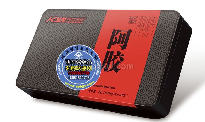 - 康仕莱诺阿胶含片(精品铁盒装) 规 格:650mg×120片/盒